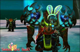 Worgens with bunny ears is the new trend. Looking at the Dwarf with the pumpkin on his head leads me to believe the Darrowmere crew I run with have a small case of packrat syndrome.