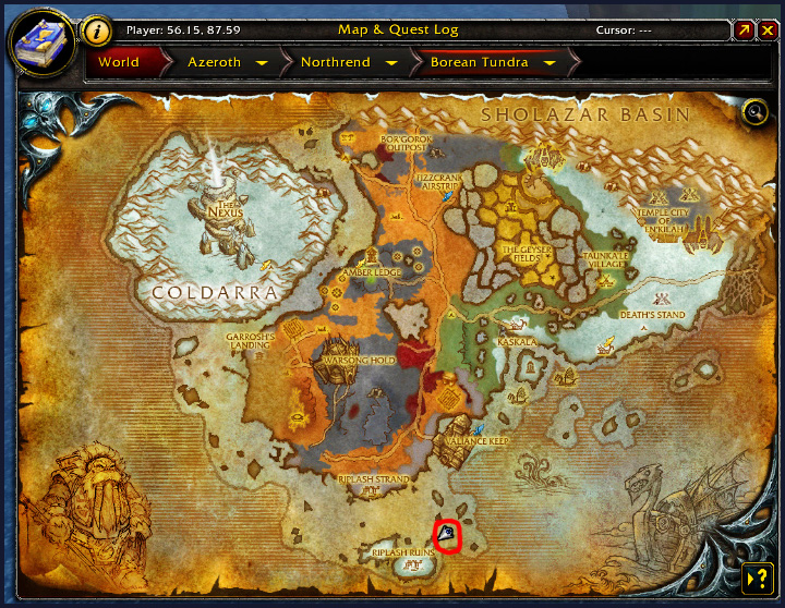 Once you are at Borean Tundra head over to coordinates on the map or the exact cords for the cave entrance: 55.78 88.11